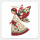 Lovely Christmas angel with red and green festive details, poinsettias and golden stars. Brings warm holiday feelings and nostalgic Christmas charm to your celebration.