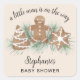 This Christmas Gingerbread Baby Shower sticker is decorated with watercolor gingerbread cookies and pine greenery on a soft beige background. It says "A Little Man Is On The Way" in stylish script typography. Easily customizable. Original Watercolor © Michele Davies.