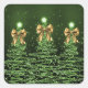 Sticker Carré Christmas Sparkling Trees Green Faux Gold Bow