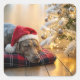 Sticker Carré Christmas Weimaraner Dog By a Tree