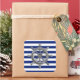 Un chrome argenté comme des roues sur un décor bleu marine rayures. Un cadeau nautique moderne.