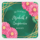 Illustration délicate d'aquarelle avec cadre géométrique or fixé contre un arrière - plan vert émeraude. Le cadre est orné de chrysanthèmes roses chauds et vibrants placés le long des bords extérieurs. L'ensemble du design est d'une texture douce aquarelle, alliant élégance et touche florale naturelle.