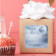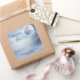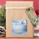 Mariage merci autocollants avec un ciel d'imaginaire magique avec des nuages bleus fluides et une grande belle lune. 2 cygnes blancs qui volent ensemble.