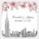 Sticker Carré Ciel de NYC ESB Gravure Fleur Rose Aquarelle