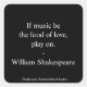 Citation de William Shakespeare - Sticker Carré d'amour. Si la musique est la nourriture de l'amour, jouez sur. William Shakespeare - 26 avril 1564 (baptisé) - 23 avril 1616)[nb 1] était un poète, dramaturge et acteur anglais, largement considéré comme le plus grand écrivain de la langue anglaise et le plus grand dramaturge du monde[2]. Il est souvent appelé le poète national d'Angleterre, et le "Barde d'Avon".[3][nb 2] Ses oeuvres existantes, y compris les collaborations, se composent d'environ 38 pièces,[nb 3] 154 sonnets, deux longs poèmes narratifs, et quelques autres versets, certains d'une paternité incertaine. Ses pièces ont été traduites dans toutes les principales langues vivantes et sont interprétées plus souvent que celles de n'importe quel autre dramaturge. Pour en savoir plus sur Wikipedia, cliquez sur ce lien https://en.wikipedia.org/wiki/William_Shakespeare