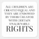 Lettres noires sur autocollant blanc. Tous les enfants sont créés égaux et ils sont dotés par leur Créateur de certains droits inaliénables.