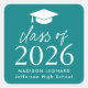 Sticker Carré Classe moderne de 2025 Script Graduation Turquoise