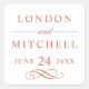 Formal terracotta orange mariage design autocollant caractéristiques belle typographie qui combine un script de calligraphie fleuri traditionnel avec lettrage de bloc classique. Le texte personnalisé du monogramme peut être personnalisé avec les noms des mariés et des mariés et la date du mariage. Comprend un accent de défilement décoratif. Veuillez acheter notre collection Classic Elegant Terracotta Orange Mariage Collection pour coordonner les conceptions.