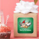 Le Cochon de Noël volant sur un Autocollant Carré classique. Personnalisez le texte.