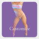 Modèle féminin portant un tee-shirt coupé disant Hot Tub Club, minuscule string et talons hauts à customiser, personnalisez en changeant de nom