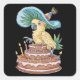 Sticker Carré cockatoo perché sur gâteau d'anniversaire casquett