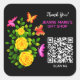 Sticker Carré Code QR élégant Merci à fleurs de rose jaune