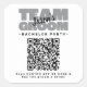 Payez un verre au marié ! Autocollant personnalisé de code QR pour enterrement de vie de garçon avec la mention "ÉQUIPE DU MARIÉ" en caractères gras gris clair. Personnalisez le nom du marié en écriture noire. Le titre ou l'enterrement de vie de garçon est indiqué ci-dessous en noir ainsi que le lieu de la fête. Personnalisez avec votre code QR lié à l'application de votre choix. Personnalisez les instructions pour le code QR ci-dessous du code. Toutes les couleurs de ce design sont personnalisables dans l'outil de personnalisation de Zazzle ! Envoyez un message pour toute question ou demande de personnalisation de couleur. Le code QR tel que conçu pour un autocollant fini de 3 pouces sera un grand 3 x 3 cm. Les codes QR de moins de 2 x 2 cm ne sont pas recommandés.