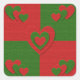 Sticker Carré Coeur en Noël Couleurs Rouge Vert Felting Look