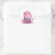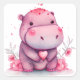 Sticker Carré Cœur Mignon Hippopotame Saint Valentin