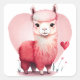 Sticker Carré Cœur Mignon Lama Rose Saint Valentin