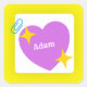 Sticker Carré Coeur mignon pourpre avec nom personnalisable