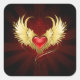 Sticker Carré Coeur rouge avec ailes d'or