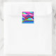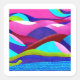 Paysage abstrait coloré de collines et d'un océan aux couleurs rose, violet, bleu, vert et cyan.