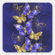 Composition des luxueux papillons saphir et bijoux en or sur arrière - plan bleu texturé.