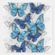 Vertical composition of réalistes, blue and white morpho butterflies on gray textured background. Morphine bleu.