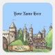 La peinture de Linda Baysinger Peck d'un village médiéval, ou renaissance, avec château, tours et cottages. Le texte dit : "Il était une époque magique..." Ajoutez simplement votre propre nom, pour personnaliser. Image © Linda Baysinger Peck Tous droits réservés