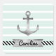 Sticker Carré Cool Nautical Mint Stripes Ancre personnalisée