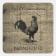 Sticker Carré Coq de Ferme Rustique en Bois de Grange Nom de Fam