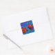 Sticker Carré Coq et poules arc-en-ciel, bleu électrique