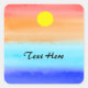 Sticker Carré Coucher de soleil sur l'aquarelle océanique Art Ab