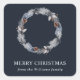 Une approche minimaliste des autocollants de vacances avec un fond bleu foncé rustique avec une élégante couronne argentée et bleue à l'avant et une police nette et facilement personnalisable. Parfait pour les enveloppes et les sacs-cadeaux.