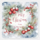 Sticker Carré Couronne de pin aquarelle Baies rouges Joyeux Noël