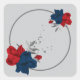 Sticker Carré couronne feuille marine & fleurs rouges gris