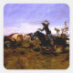 Sticker Carré "Cowboys Roping a Steer" par Charles M Russell