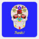 Sticker Carré Crâne avec Rose et napperons sur bleu