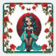 Sticker Carré Crânes à sucre de Roses turquoises et rouges