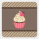 Sticker Carré Crème rose Brown rayures fraise Cupcake