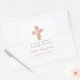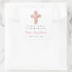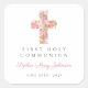 Autocollant carré personnalisé Croix florale rose élégante Première Communion