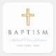 Sticker Carré de Baptême de Bébé Personnalisé Religieux Croix Bleu Script Garçon Baptême.