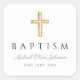 Sticker Carré de Baptême de garçon personnalisé Croix bleu Dusty.