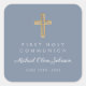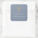Sticker Carré de première communion personnalisé Dusty Blue Religious Cross Boy. Une partie de la Suite d'invitation de la première communion de Dusty Blue Cross Boy avec invitation, papeterie et accessoires de fête disponibles.