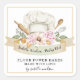 Carte de visite pâtissier aquarellisé avec une bannière de nom et de titre et des outils de boulangerie\ et casquette chef avec des touches florales et une bordure d'or. Style d'illustration fantasque.