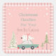 autocollant de Noël rose rétro - parfait pour les gourmandises, les friandises et les cadeaux! Personnalisez avec votre propre message pour cette touche parfaite ! Version de voiture bleue