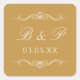 Sticker Carré Custom Monogram Modern Elegant Gold Swirl Wedding