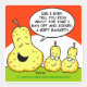 Cute Funny Cartoon Pears and Giftpkets Collectible Sticker présente une poire plus âgée, peut-être un père ou un oncle, impressionnant ses deux enfants ou neveux avec un récit aventureux sur le moment où il s'est enfui et a rejoint un panier cadeau.