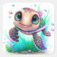 Sticker Carré Cute Baby Sea Turtle Illustration – Adorable Ocean
