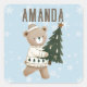 Sticker Carré Cute Bear Christmas Tree Snowflakes Kids Name