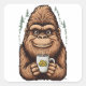 Sticker Carré Cute Bigfoot Drinking Coffee Funny Sasquatch
