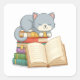 Sticker Carré Cute Cat on top of a Book Stack