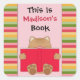 Sticker customisé/Plaque pour enfants : Cartoon Livre de lecture de chats Motif/Colorful Red and Green Striped Arrière - plan/Whimsical Typographie Nom Personnalisation